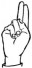 На ћирилици написано КОСТАДИН ДЕНИЋ састоји се из 13 слова [?]. Исписано ћириличном једноручном азбуком за глувонеме: